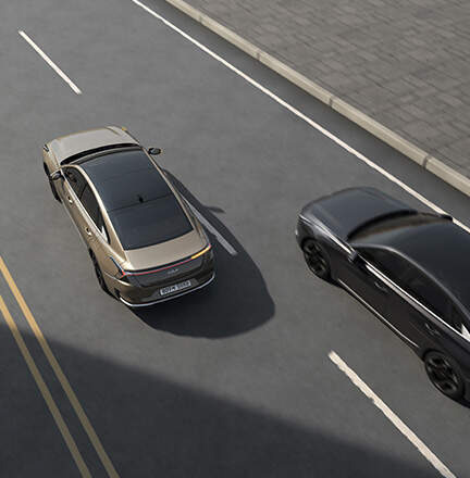 K8 페이스리프트는 운전자의 안전을 최우선으로 고려하여 다양한 ADAS(첨단 운전자 지원 시스템)를 제공합니다. 조향 휠 그립 감지(HoD) 기능은 운전자가 항상 차량을 정확히 제어하고 있는지 확인하며, 고속도로 주행 보조 2는 앞 차량과의 안전 거리를 유지하면서 주행을 도와줍니다.