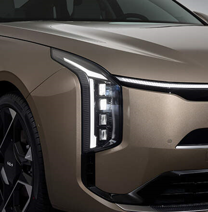 K8 페이스리프트는 기아의 최신 디자인 철학인 ‘Opposite Unite’를 반영하여 더욱 세련되고 현대적인 외관을 제공합니다. 이 모델은 전면에 수직형 LED 헤드램프와 스타 맵 시그니처가 적용된 주간주행등(DRL)이 장착되어, EV9 세단과의 일관된 패밀리 룩을 완성합니다. 또한, 파노라마 선루프가 추가되어 차량 내부의 개방감을 극대화하였으며, 크롬 사이드 가니쉬가 적용되어 더욱 다이내믹한 이미지를 연출합니다.